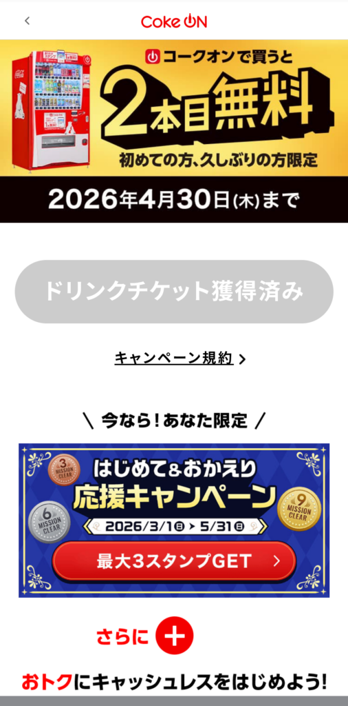 お得すぎて使っちゃったんですが、50%還元です。いつもならあんな高い自販機買わないんですが、170円→85円ですよ。これは使うしかないでしょう。しかも・・・